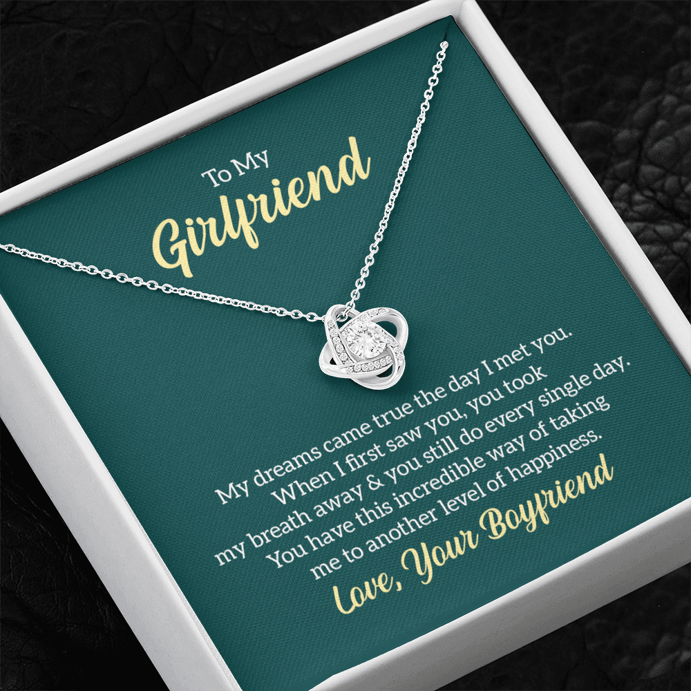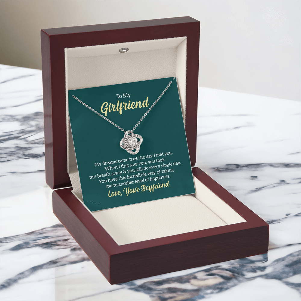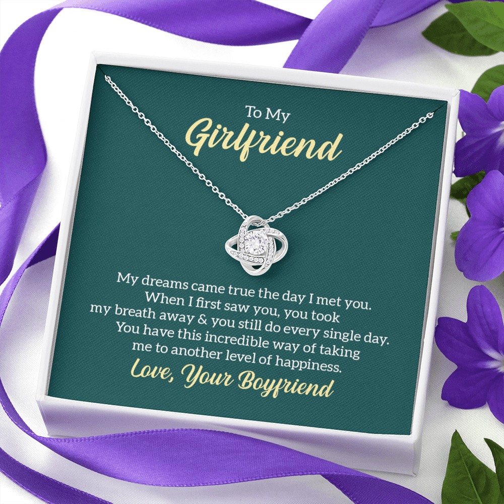 Imagine her reaction receiving this beautiful Love Knot Necklace. Representing an unbreakable bond between two souls, this piece features a beautiful pendant embellished with premium cubic zirconia crystals. Surprise your loved one with this gorgeous gift today!